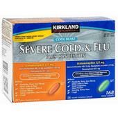 Kirkland Severe Cold & Flu Plus Congestion 168 Caplets (від Простуди, Грипу, Кашлю) Безрецептурний препарат від кашлю, застуди чи грипу. 112 денних капсул та 56 нічних капсул (разом 168) Полегшує симптоми застуди та грипу: жар, закладеність носа, біль у горлі, головний біль, ломота, кашель. Kirkland – муколітичний препарат. Показання: - захворювання органів дихання та стану, що супроводжуються утворенням в'язкого слизово-гнійного мокротиння, що важко відокремлюється; - гострий та хронічний бронхіт; - трахеїти внаслідок бактеріальної та/або вірусної інфекції; - бронхіоліт; - пневмонія; – бронхіальна астма; - Бронхоектатична хвороба; - ателектази внаслідок закупорки бронхів слизової; - муковісцидоз (у складі комбінованої терапії); - видалення в'язкого секрету з дихальних шляхів при посттравматичних та післяопераційних станах; – катаральний та гнійний отит, гайморит, синусит (полегшення відходження секрету). Протипоказання: - Підвищена чутливість до компонентів препарату; - виразкова хвороба шлунка та дванадцятипалої кишки у фазі загострення; - фенілкетонурія; - вагітність; - період лактації (грудного вигодовування); Застосування: Приймайте по 2 капсули кожні 4 години, проковтуйте повністю; не роздавлюйте, не розжовуйте та не розчиняйте. Не приймайте більше 10 капсул протягом 24 годин. Дорослі та діти від 12 років. (Для дітей віком від 4 до 12 років – запитайте лікаря). Добавил: rev, Вівторок, Сьогодні